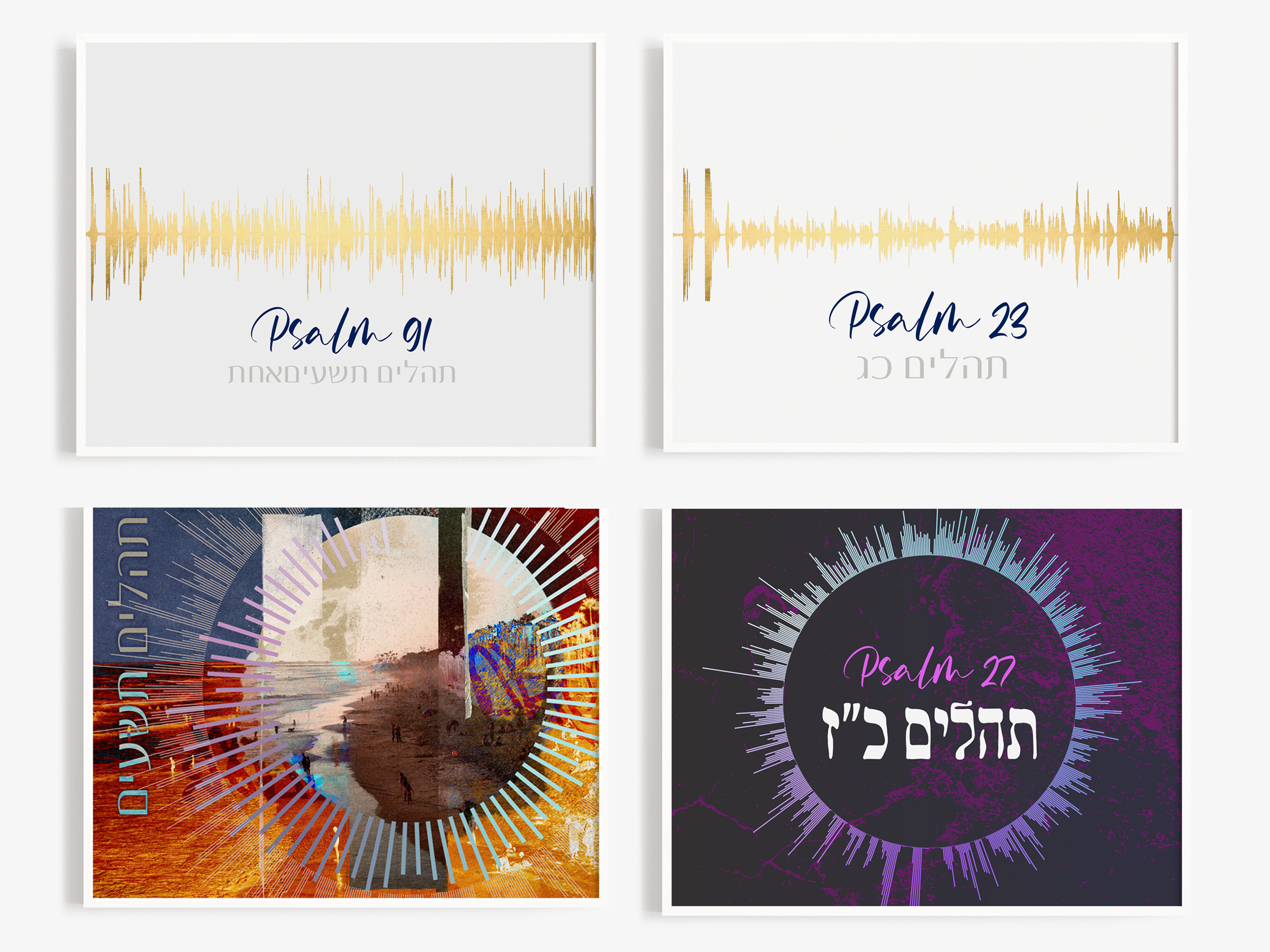 Crafted with elegance and authenticity, each artwork features the scripture’s title in graceful script, accompanied by the Hebrew translation, connecting you to the Psalm’s profound spirituality and historical roots. This collection isn't just art; it's a personal invitation across cultures and time, offering comfort, courage, and peace through a blend of visual innovation and deep, spiritual heritage.