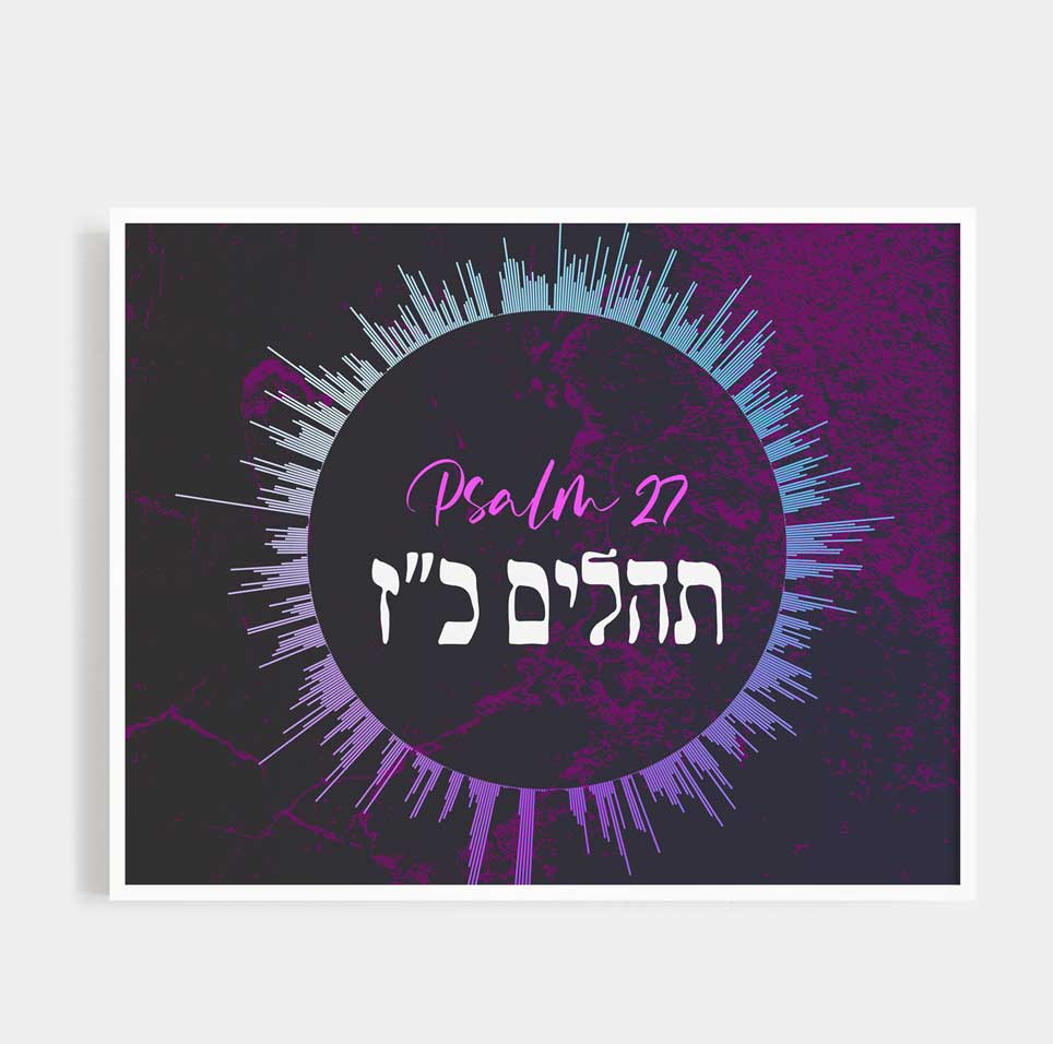 A radial sound wave in the royal colors of purple; reflecting Psalm 27, a Psalm of courage and strength. The Lord is my light, of whom shall I be afraid? The Hebrew name of "Psalm 27" is written within.