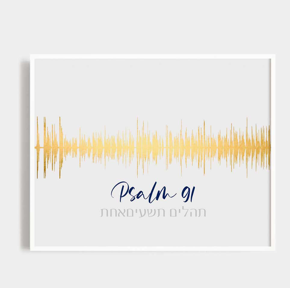 Step into the Psalms Collection, where each sound wave piece is a visual echo of my voice, personally reading scriptures from Psalms 23, 27, 90 and 91. This unique approach marries ancient texts with modern technology, transforming my spoken renditions into both radial and linear sound wave designs. These vibrant visuals, enhanced with metallic overlays, symbolize the divine guidance and light embedded within these powerful verses.